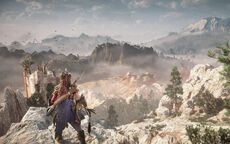 抵達(dá)營地后,入口將會(huì)被封閉,必須從山上走到右邊的入口。在營區(qū)的西北方,你可以看到營長,并攀巖而上。在擊殺頭目的地點(diǎn),點(diǎn)擊R3 (數(shù)據(jù)點(diǎn),用紫色標(biāo)注),并與之交流。
