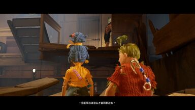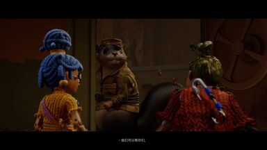 這一關中,需要夫妻兩人分別使用錘子和釘子,來相互配合通關,釘子可以創造讓錘子可以勾住的著力點,而錘子可以敲下更多的釘子用于使用。兩名角色的道具配合可以產生無比奇妙的玩法。
