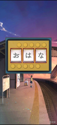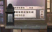 7、謎底是屋外牌子的五個(gè)字,用車票對(duì)應(yīng)的小球按包上的顏色順序排列,按這個(gè)順序解鎖;