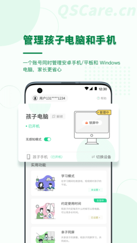 青松守護家長端是一款功能多樣的工具類應用,其主要目的是協助家長不受時間和地點限制地管理孩子使用的電腦、手機與平板設備,從而保障孩子在上網過程中能保持健康且合理的使用狀態。