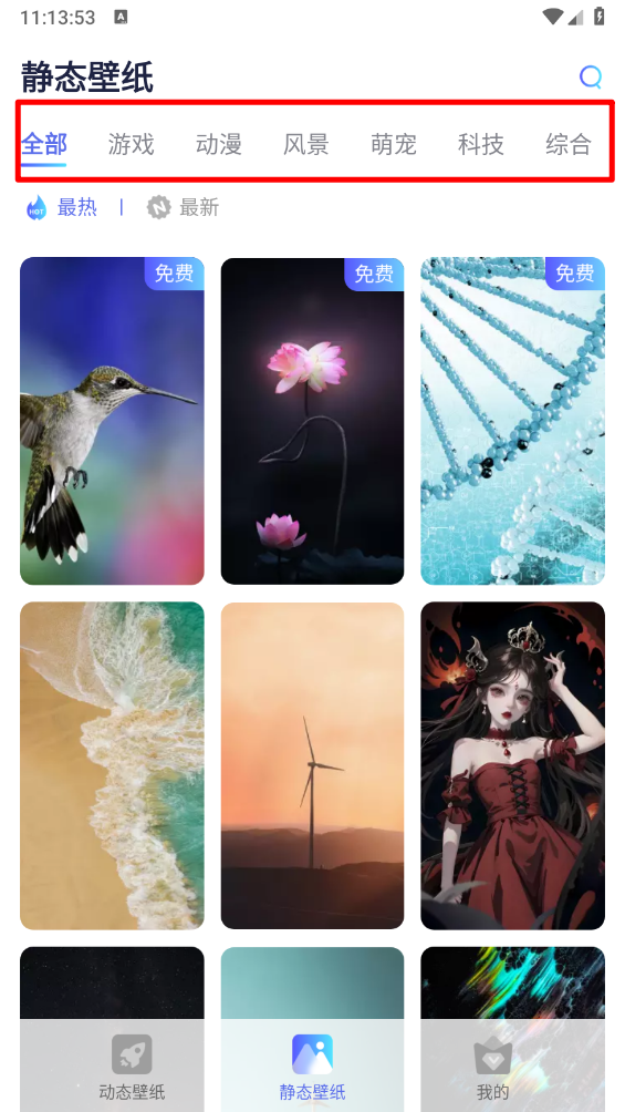 還可以切換至"靜態壁紙"頁面根據分類進行選擇。